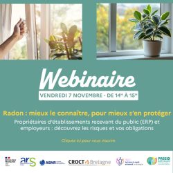 Dans le cadre du Plan régional santé environnement 4 et du Plan régional santé travail, l’ARS, la DREAL et la DREETS de Bretagne, en partenariat avec l’ASNR vous invitent à un webinaire le 7 novembre prochain de 14h à 15h :